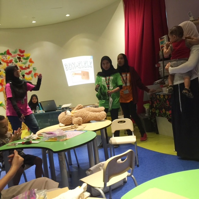 Since Ukulele kita buat dari kotak, so nama canggih sikit tukar jadi Box-elele . hehe . Ni time tengah briefing and suai kenal sikit. Ada dua group of family jugak semalam. Sama2 join activity buat box-elele.