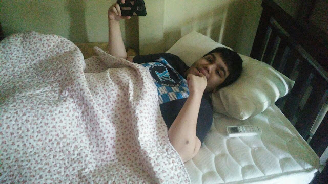 Now Daniel duduk rumah je tengok tv, tengok makanan kat youtube. Dia ada hp, tiap pukul 4 petang bagi dia main hp. Hp xde simcard sebab nanti dia call polis. Dulu banyak kali dia call polis sampai polis contact and nak buat tindakan lahhh hahaa ingat kita main2 then lepas explain...polis ok. Sebab tu hp dia xde simcard. Kalau tak memang dia dial je polis.