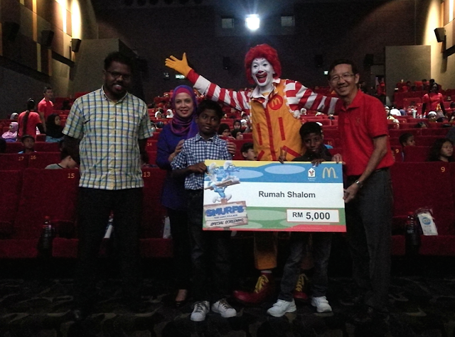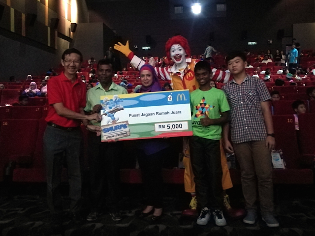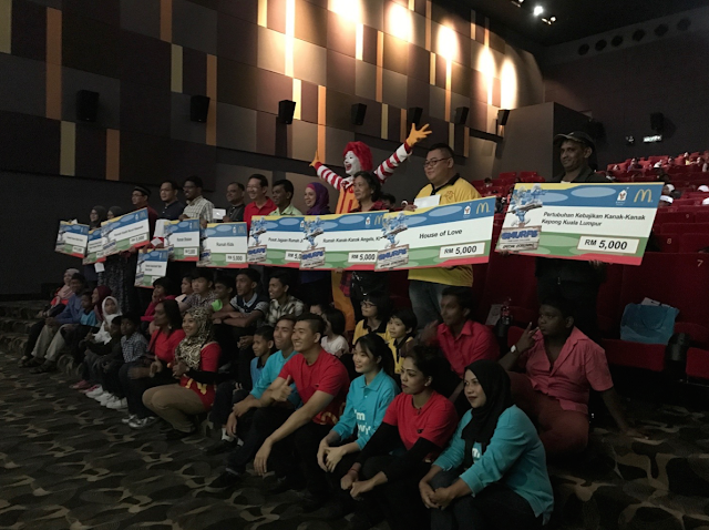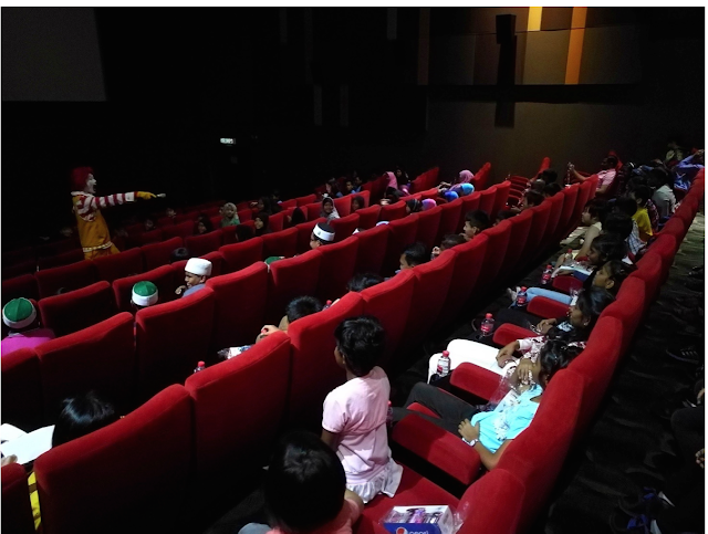 Masuk cinema dalam pukul 11.00 macam tu. Tapi sebelum movie start, diorang buat ceremony penyerahan cheque untuk home's kid ni. Ni antara photo during ceremony.